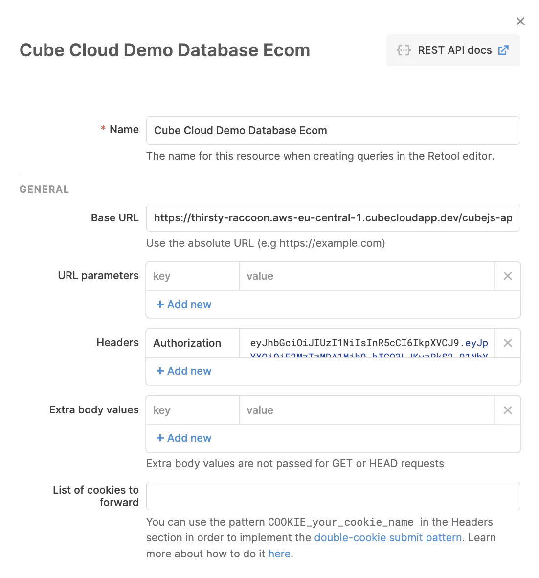 Next, copy and paste Cube’s REST API URL and the Authorization token.